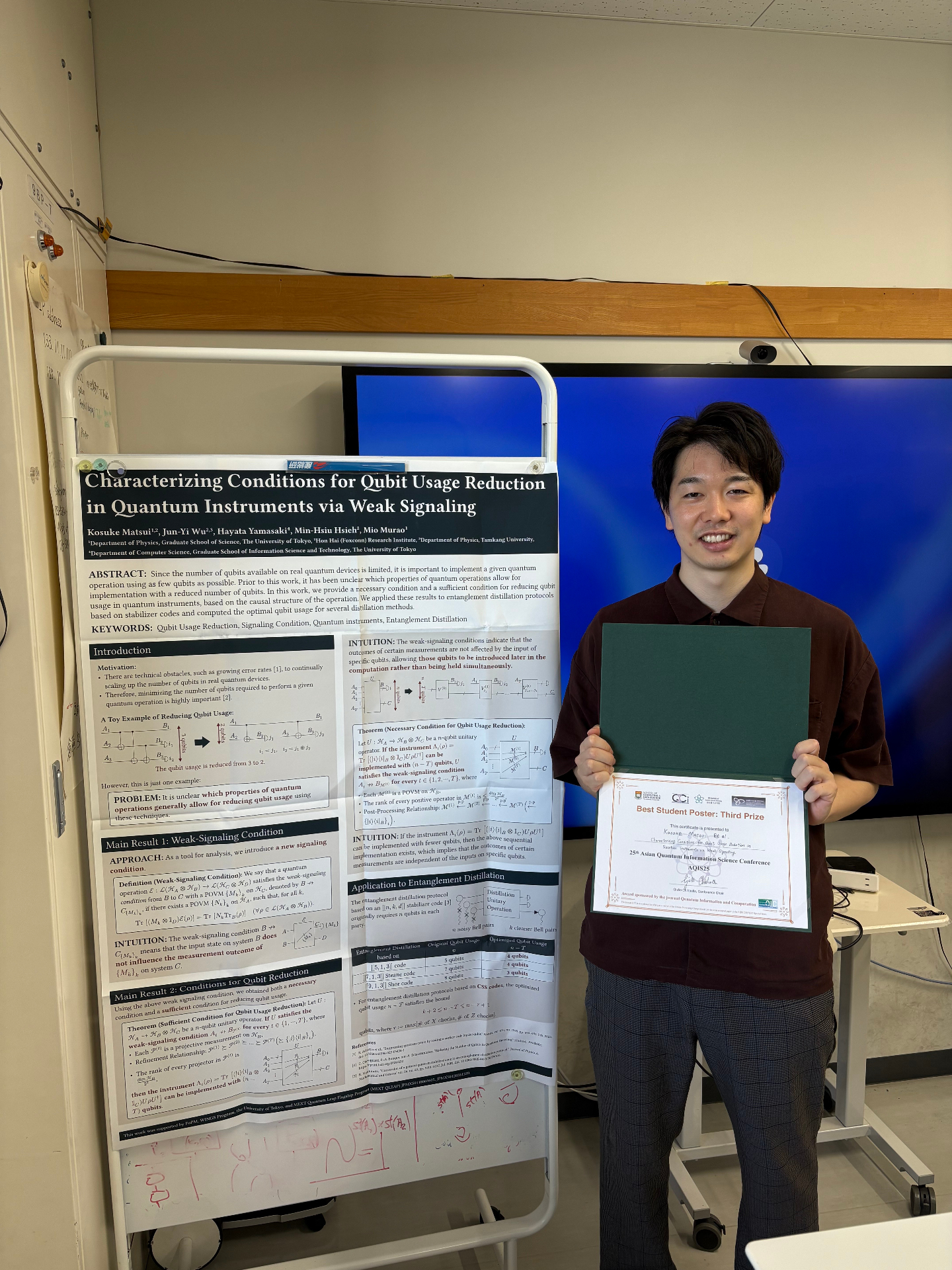 Highlighting the strength of our emerging talent, Hon Hai's intern, Mr. Kosuke Matsui, was awarded the Best Student Poster: Third Prize for his work, "Characterizing Conditions for Reducing Qubit Requirements in Quantum Instruments via Weak Signaling." This outstanding achievement was the result of a collaboration with Hon Hai's A. Prof. Jun-Yi Wu and Dr. Min-Hsiu Hsieh, alongside researchers from the University of Tokyo. These successes, from the plenary stage to the award podium, underscore Hon Hai's deep commitment to fostering innovation and advancing the frontiers of quantum information science.