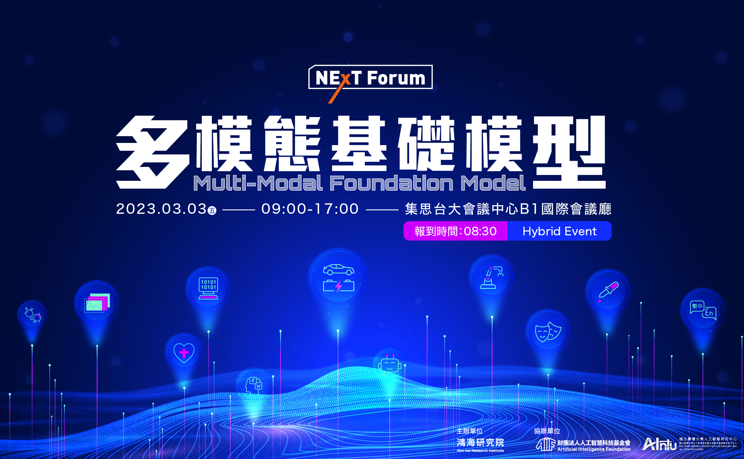 鴻海研究院2023年第一場NExT Forum,邀請加拿大Dr. Irina Rish, MILA、台灣微軟、台智雲等國內外專家學者與企業,共談多模態基礎模型台灣AI產業帶來的挑戰與機會,並提出整合台灣AI量能的務實模型建構方法,推進台灣AI邁向世界之巔!