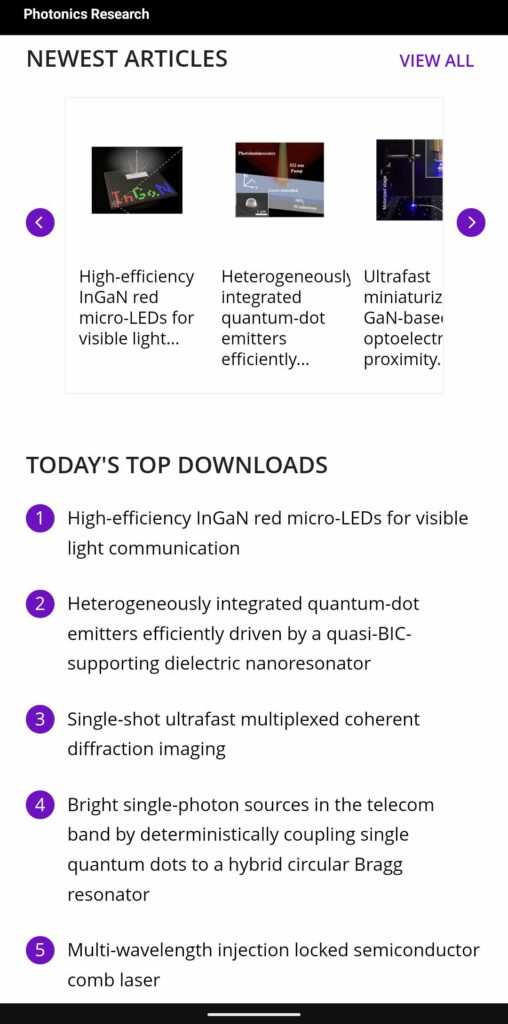 賀!!恭喜半導體所發表之論文登上Photonics Research top downlods賀!!恭喜半導體所發表之論文登上Photonics Research top downlods發布日期August 4, 2022研究中心半導體研究所分享FacebookXLinkedin恭喜半導體所發表之論文 “High-efficiency InGaN red micro-LEDs for visible light communication” 登上期刊Photonics Research的top downlods排行榜 [LINK]分享 Facebook LinkedIn X 最新消息查看全部查看全部半導體研究所攜手產學界開創新模式 鴻海研究院突破碳化矽半導體技術2023-09-01半導體研究所AI技術的發展如何影響半導體的發展?專訪鴻海研究院半導體所郭浩中所長2023-09-01半導體研究所「More than Moore」探索新世代半導體創造無限可能2023-06-13