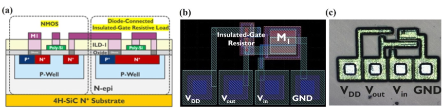 鴻海研究院自主開發的碳化矽製程,運用在單晶片整合電路設計上,開發基於碳化矽元件的單晶片整合電路技術,成功克服傳統矽基電路在高溫(超過150°C)下效能衰減的限制。相較於傳統電阻負載與二極體連接負載,該技術透過IGRL結構實現更高的線性度與更廣的輸出電壓範圍。此設計不僅與現有碳化矽元件製程相容,無需額外製程步驟,更在高溫環境中實現精準的類比訊號處理,適用於極端環境下的感測與控制系統。這個單晶片整合電路技術的研究成果,實現高線性度、高頻寬與高溫穩定的優異性能,可在300°C 環境下穩定運作,克服傳統矽電路高溫限制。